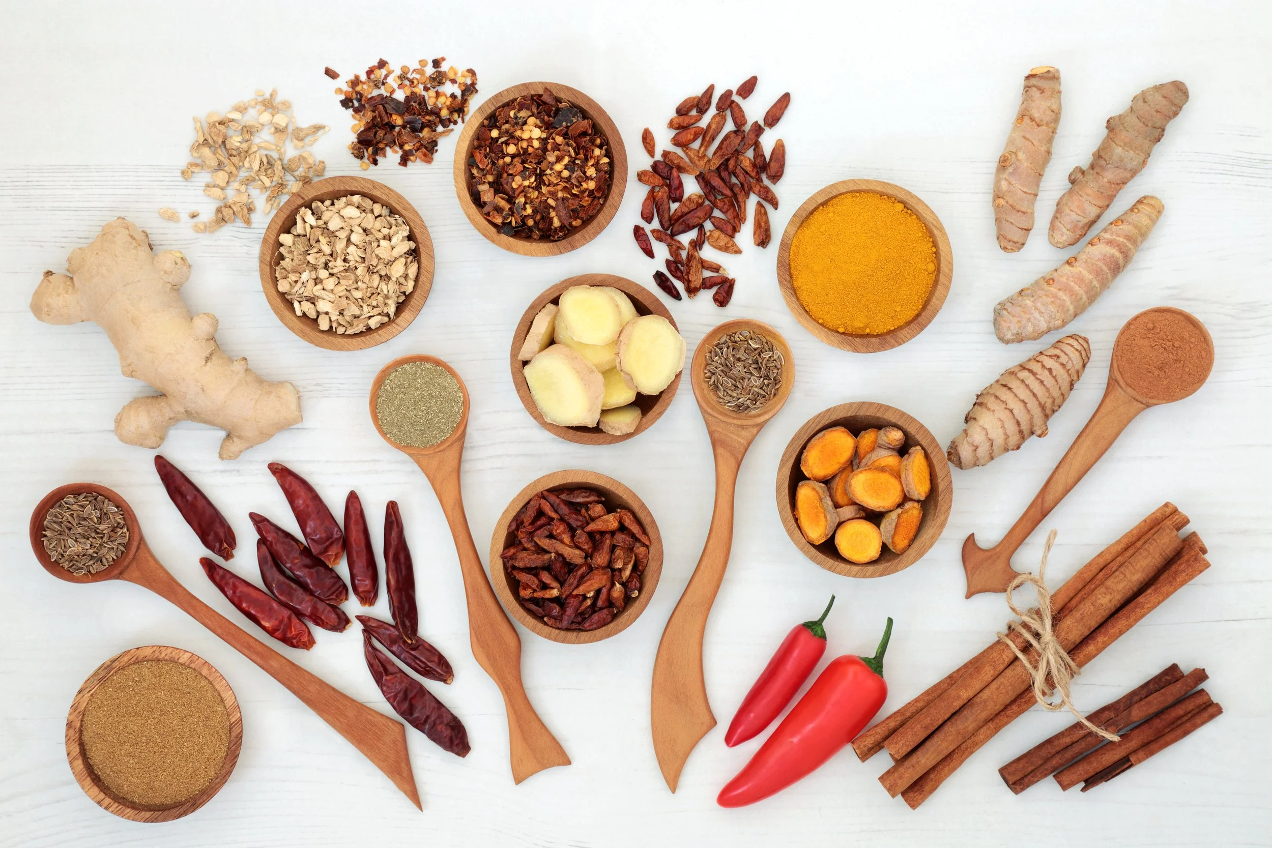 Another layer of ayurveda involves incorporating spices and herbal teas into your diet, which is generally safe when used in normal amounts in cooking and consuming. In ayurvedic theory, you might use these to balance your doshas. For example, if you have a pitta (fire) dosha, you may use more warming spices like cinnamon, cardamom, and ginger in the winter and less of these in the summer to avoid overheating and potentially help decrease inflammation.